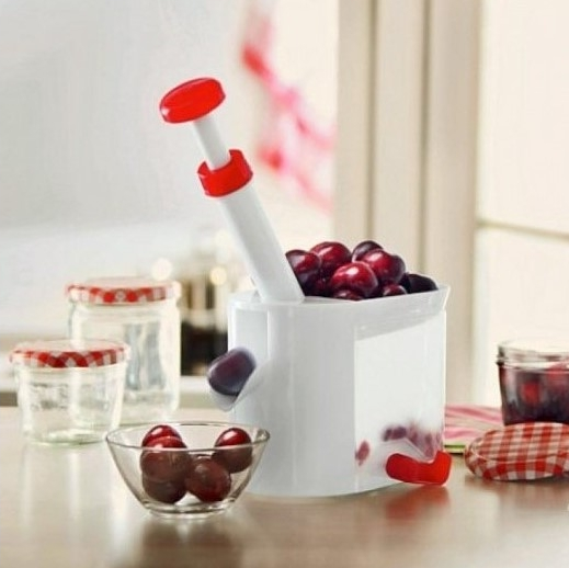 - это уникальное приспособление, которое поможет вам быстро и качественно отделить ягоду от косточки, не забрызгав соком все вокруг, при этом ягода не имеет особых повреждений. Она сохраняет свою форму и сочность. Любая выпечка либо консервация варенья принесет вам огромное удовольствия от процесса и значительно сэкономит время. Благодаря вишнечистке ваш пирог будет иметь внешний вид кулинарного совершенства.