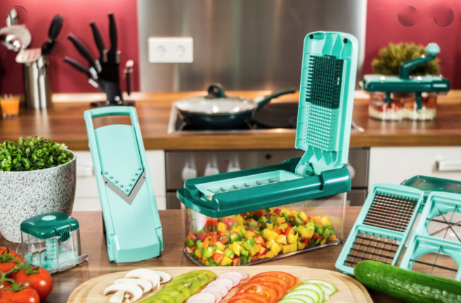 - это многофункциональный помощник каждой хозяйке, который не только упростит задачу в нарезке овощей и фруктов. Он имеет компактную сборку, которая позволяет хранить все элементы приспособления в себе, занимая при этом минимум места для хранения. Найсер дайсер порежет, почистит, нашинкует и натрет для вас любое нужное количество продуктов, после чего вы можете промыть его под проточной водой, не применяя химических средств.