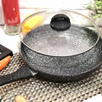 Классические сковородки подходят под все виды современных плит, имеют высоту стенок около 4-6 см. Как правило, они круглой формы и идут в комплекте со стеклянной крышкой. Имея антипригарное покрытие, готовить на них можно с минимальным количеством масла или вовсе без него.