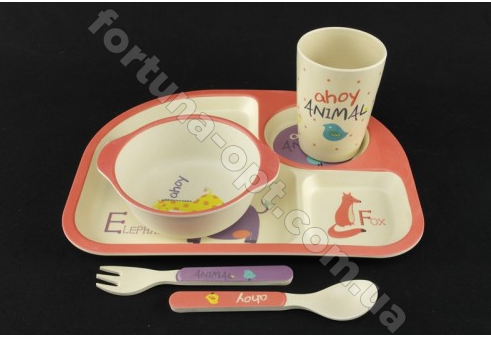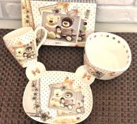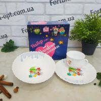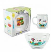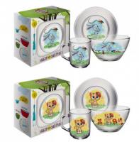Детский набор из стеклокерамики 3 предмета Веселые пухнастики (чашка 210мл, миска 620 мл, тарелка 19 см) SNT - 30069