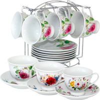 Набор чайный 12 предметов 200 мл на стойке Цветы-микс 021-12-01