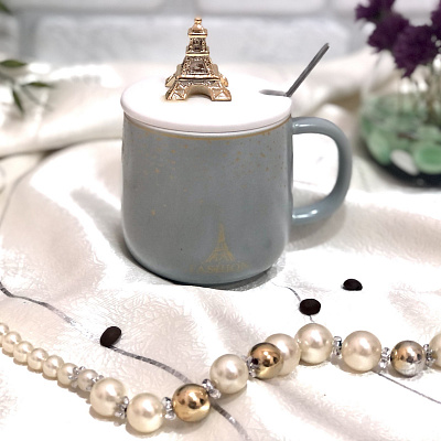 Чашка с крышкой и ложкой 400 мл "Париж" 88398