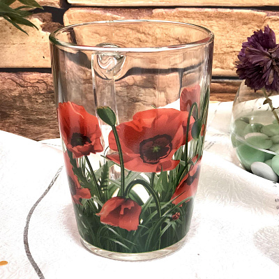 Чашка стекло 300 мл Капучино цветы 8140