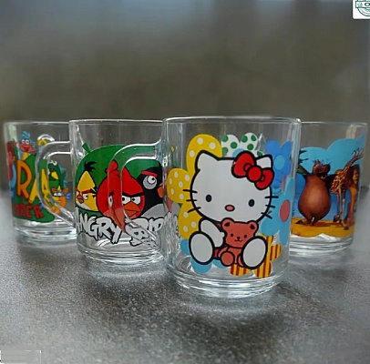 Чашка стеклянная 200 мл Детская Микс - 8105