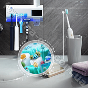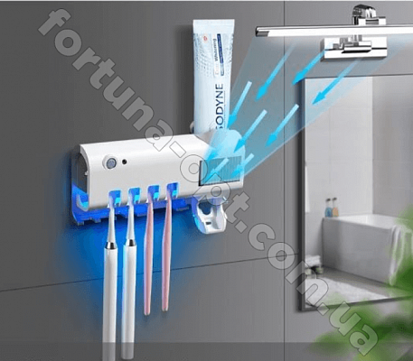 Устройство 3 в 1: держатель для зубных щеток + ультрафиолетовая дезинфекция + механический дозатор зубной пасты
