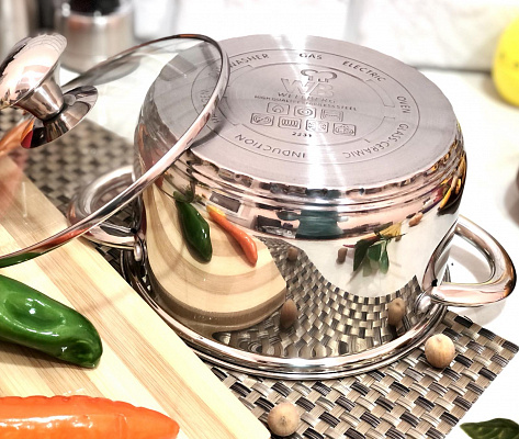 Кастрюля 1065 изготовлена из нержавеющей стали, объем - 2,5 литра. Обладает многослойным капсульным дном, благодаря которому тепло распределяется равномерно по всей поверхности кастрюли. Стеклянная крышка с пароотводом, ручки из нержавеющей стали остаются прохладными даже при длительном приготовлении пищи, обладают высокой износоустойчивостью. Подходит для приготовления на всех современных видах плит. Стильный и практичный дизайн гарантирует качество и функциональность на долгие годы. Идеально подходит для приготовления первого и второго блюда, компота, чая в небольших объемах.