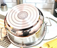 Объем - 9 л, изготовлена из нержавеющей стали, имеет привлекательный и безупречный вид, легка в уходе. Обладает многослойным капсульным дном, благодаря которому тепло распределяется равномерно по всей поверхности кастрюли. Стеклянная крышка, ручки из нержавеющей стали остаются прохладными даже при длительном приготовлении пищи, обладают высокой износоустойчивостью. Подходит для приготовления на всех современных видах плит. Стильный и практичный дизайн гарантирует качество и функциональность на долгие годы. Идеально подходит для приготовления первого и второго блюда. Спешите купить!!!