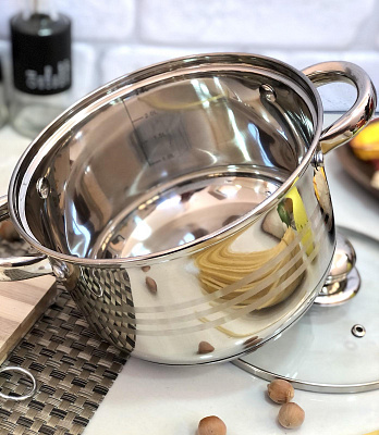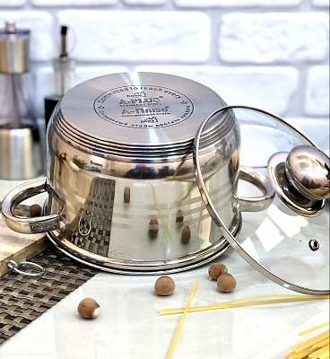 Объем - 2,9 л, изготовлена из нержавеющей стали, имеет привлекательный вид, легка в уходе. Обладает многослойным капсульным дном, благодаря которому тепло распределяется равномерно по всей поверхности кастрюли. Стенки кастрюли A-Plus - 2166 толщиной 0,5 мм, стеклянная крышка с отверстием для выхода пара. Ручки из нержавеющей стали остаются прохладными даже при длительном приготовлении пищи, обладают высокой износоустойчивостью. Кастрюля A-Plus - 2166 подходит для всех источников тепла: газовой, индукционной, керамической, электрической плитам. Современный и практичный дизайн гарантирует качество и функциональность на долгие годы. Подходит для мытья в посудомоечной машине.