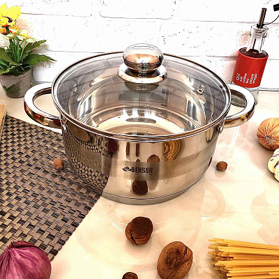 Объем - 10 л, изготовлена из нержавеющей стали, имеет привлекательный и безупречный вид, легка в уходе. Обладает многослойным капсульным дном, благодаря которому тепло распределяется равномерно по всей поверхности кастрюли. Стеклянная крышка с пароотводом, ручки из нержавеющей стали остаются прохладными даже при длительном приготовлении пищи, обладают высокой износоустойчивостью. Подходит для приготовления на всех современных видах плит. Стильный и практичный дизайн гарантирует качество и функциональность на долгие годы. Идеально подходит для приготовления первого и второго блюда, компота, чая в больших объемах. Спешите купить!!!