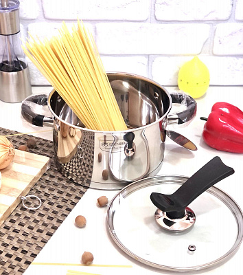 Объем - 1,9 л, изготовлена из высококачественной нержавеющей стали, имеет привлекательный вид, сатинированная полировка корпуса, легка в уходе. Обладает многослойным термоаккумулирующим дном, благодаря которому тепло распределяется равномерно по всей поверхности кастрюли. Крышка из термостойкого стекла с отверстием для выхода пара, не нагревающиеся ручки из нержавеющей стали, дополнительно покрытые силиконом. Кастрюля подходит для газовой, индукционной, керамической, электрической плитам. Современный и практичный дизайн гарантирует качество и функциональность на долгие годы. Подходит для мытья в посудомоечной машине.