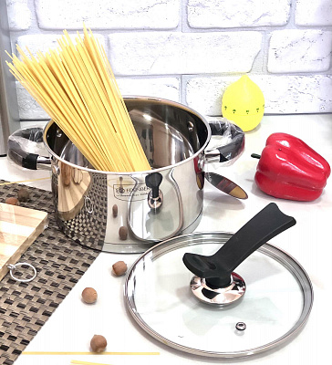 Объем - 3,6 л, изготовлена из высококачественной нержавеющей стали, имеет привлекательный вид, сатинированная полировка корпуса, легка в уходе. Обладает многослойным термоаккумулирующим дном, благодаря которому тепло распределяется равномерно по всей поверхности кастрюли. Крышка из термостойкого стекла с отверстием для выхода пара, не нагревающиеся ручки из нержавеющей стали, дополнительно покрытые силиконом. Кастрюля подходит для газовой, индукционной, керамической, электрической плитам. Современный и практичный дизайн гарантирует качество и функциональность на долгие годы. Подходит для мытья в посудомоечной машине.