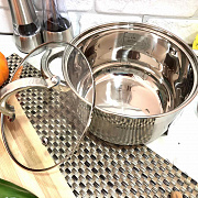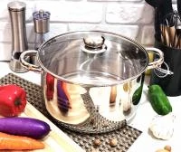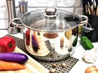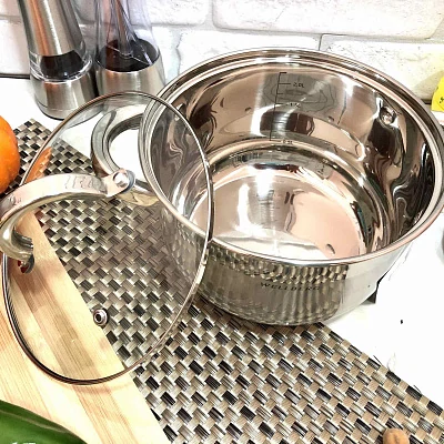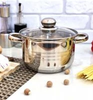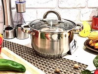 Объем - 2,7 л, изготовлена из нержавеющей стали, имеет привлекательный и безупречный вид, легка в уходе. Обладает пятислойным капсульным дном, благодаря которому тепло распределяется равномерно по всей поверхности кастрюли. Стеклянная крышка с пароотводом, ручки из нержавеющей стали остаются прохладными даже при длительном приготовлении пищи, обладают высокой износоустойчивостью. Подходит для приготовления на всех современных видах плит. Идеально подходит для приготовления первого и второго блюда, компота, чая.
