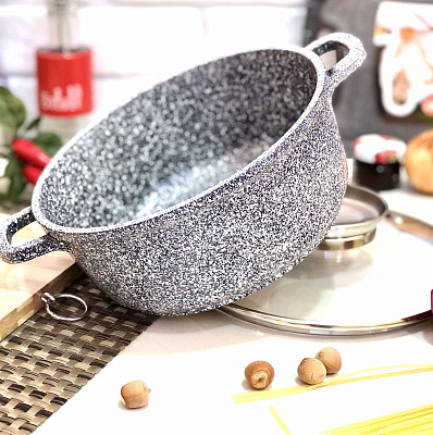 - Изготовлен из высококачественного литого алюминия, имеет антипригарное гранитное покрытие, толстые стенки.