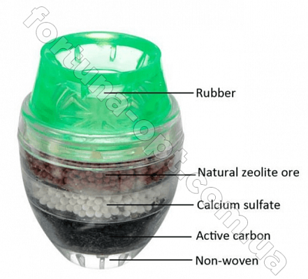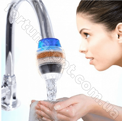 Этот водопроводный фильтр на кран использует кокосовый уголь для фильтрации воды, Кокосовый уголь - очень хороший материал для фильтров.