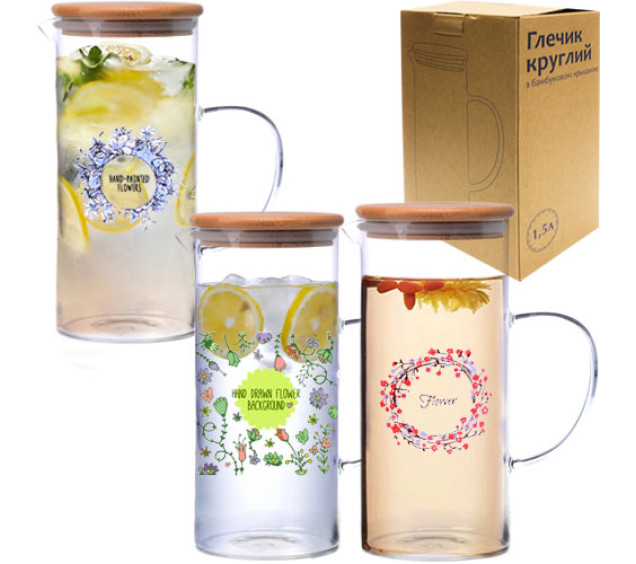 Кувшин 1,5л с бамбуковой крышкой 9030-2