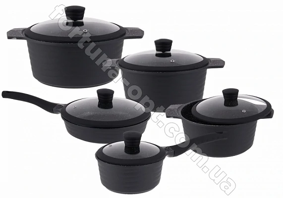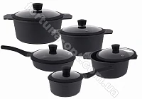 Набор посуды Edenberg EB - 9185 состоит из 10 предметов - 3 кастрюли, ковш, сотейник-сковорода со стеклянными закаленными крышками с пароотводом. Набор изготовлен из качественного литого алюминия с многослойным антипригарным мраморным покрытием, что обеспечивает экологичность продуктов и прочность посуды. Данный набор прослужит долго, поскольку он не боится механических воздействий, более устойчив к повреждениям и царапинам. Всю посуду из набора можно мыть в посудомоечной машине. Набор посуды при правильной эксплуатации прослужит долго, не потемнеет, сохранит первоначальный вид, не будет подвергаться коррозии и потускнению. Вся посуда имеет ферромагнитное дно, что позволяет использовать ее на всех видах плит, включая индукцию.