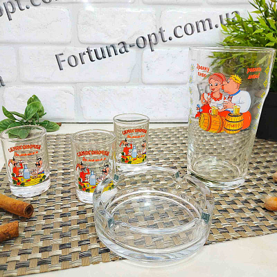 Набор с оригинальным дизайном в украинском стиле состоит из 1 бокала, 3 стопок и 1 пепельницы. Имеет красивую упаковку, поэтому подходит на роль подарка. Набор изготовлен из качественного стекла, отличается функциональностью и долговечностью. Набор «Антистресс» - это практичный и оригинальный вариант для подарка мужчинам