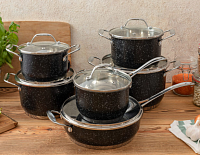 Набор посуды Edenberg EB - 4044 изготовлен из нержавеющей высококачественной стали. Данный набор посуды состоит из кастрюль, ковша и сковороды-сотейника с высокими бортами, что очень удобно в приготовлении больших порций. Многослойное капсульное дно равномерно распределяет тепло по всей площади. Крышка с прочного жаростойкого стекла, плюс ко всему имеет пароотводный клапан. Дизайн кастрюль выполнен в стильной форме, при этом ручки клепанные и с большим хватом, чтобы легко было взять крышку и не обжечь руку. Красивая подарочная упаковка набора.