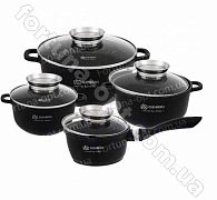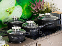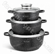 В комплект набора посуды Edenberg EB - 3984 входит 3 гранитные кастрюли с крышками и гранитный ковшик. Антипригарное гранитное покрытие предотвращает пригорание, благодаря чему не влияет на вкус и запах пищи. Этот качественный набор не содержит вредные вещества в своём составе. Корпус хорошо защищен от царапин и повреждений. Подходит для всех видов плит, включая индукцию. Можно мыть в посудомоечной машине.