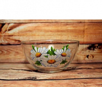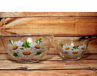 Набор салатников 1 средний и 4 маленьких . Упаковка : цветная упаковка . Материал : стекло . Декор : цветы , фрукты . В наборе 5 штук .