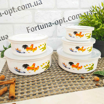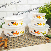 Набор судочков эмалированных (5 шт.) с пластиковыми крышками