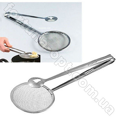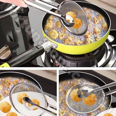 Шумовка-щипцы идеально подходит для жарки и фритюра. Жир и масло стекают обратно в посуду. Конструктивная особенность шумовки с функцией щипцов поможет придержать вынимая продукты. Такие щипцы помогут извлечь из кипящего масла картофель, пончики, беляши, чебуреки, хворост и другие блюда.