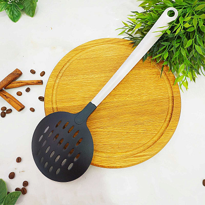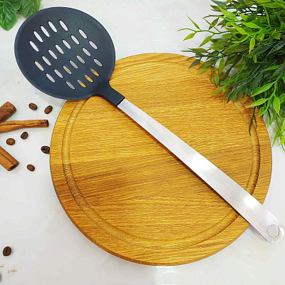 шУМОВКА 0344 тефлоновая с прорезями, ручка из нержавеющей стали. ТМ Посуда А-Плюс. Если вы ищете нержавеющую посуду в дешевом ценовом сегменте, то посуда А-Плюс как раз то, что вам необходимо. Компания Фортуна предлагает посуду А-Плюс оптом, посуда А-Плюс оптом на самых выгодных условиях в ее полном ассортименте: решетки для гриля А-Плюс, ведра нержавеющие А-Плюс, противни для выпечки А-Плюс, формы для выпечки А-Плюс, наборы кастрюль А-Плюс, термоса А-Плюс, сковородки А-Плюс, чайники А-Плюс, дуршлаги А-Плюс, миски нержавеющие А-Плюс, сита А-Плюс, электротовары А-Плюс на сайте: Fortuna-opt.com.ua