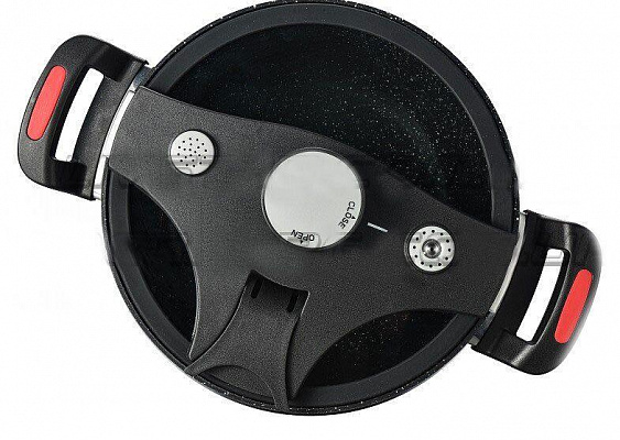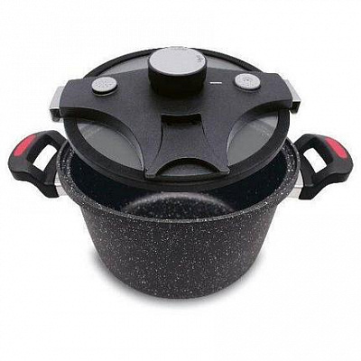 Это изделие поможет Вам быстро приготовить разные вкусные блюда. Оснащена скороварка винтами, которые плотно прижимают крышку к поверхности посуды. Изделие отвечает всем требуемым стандартам, и не поддаётся коррозии. Кастрюля имеет хорошую вместимость – ее объем шесть литров. Внутреннее мраморное покрытие отвечает за эффективность – пища не прилипает к стенкам и дну. Посуда оснащена двумя ручками, которые приятно ложатся в руку. После эксплуатации скороварка легко моется под горячей водой.