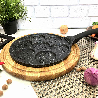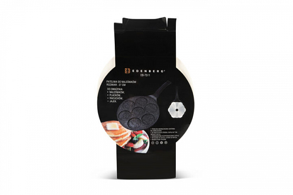 Сковорода для оладьев Edenberg EB-7511 будет подарком как любителей вкусно покушать, так и профессионалов в кулинарии. Готовить оладьи на сковороде Edenberg EB-751 одно удовольствие. У этой сковородки имеются 4 секции с изображением смайликов, диаметром 10 см,а сама сковорода имеет диаметр 27 см. Сковорода для оладьев смайлики Edenberg EB-7511 покрыта гранитным противопригарным покрытием, что является одним из характерным свойством этой сковородки, что облегчает ее чистку. Ручки, изготовленные из бакелита, не нагреваются. Сковорода для блинов, оладьев Edenberg EB-7511 может использоваться на всех типах плит, даже индукционных.