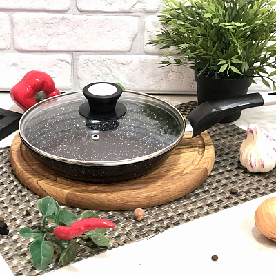 Сковорода A-Plus - 1482 с диаметром 26 см удобная в использовании за счет гранитного покрытия, которое позволяет жарить без всяких проблем без масла или с минимальным количеством масла.