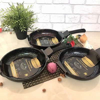 - Имеет антипригарное трехслойное мраморное покрытие.