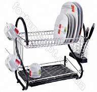 Двухярусная сушилка для тарелок и чашек станет надежным помощником в домашнем обиходе. Благодаря двум ярусам, на ней свободно помещаются тарелки, ложки, вилки, ножи, чашки, бокалы и другие столовые принадлежности.