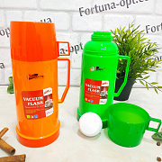 Корпус выполнен из пластика, имеет отличные защитные параметры от царапин и деформаций. Колба, куда Вы будете наливать чай, изготовлена из стекла – экологически чистого и безопасного для здоровья материала, который не влияет на вкус напитка. Крышку можно использовать в виде чашки. Термос легко закрывается. Он является полностью герметичным, так что можно не переживать за сохранность вещей – жидкость не будет выливаться из термоса.